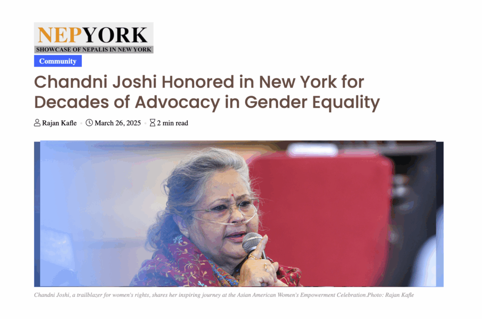 Chandni Joshi Honored in New York for Decades of Advocacy in Gender Equality